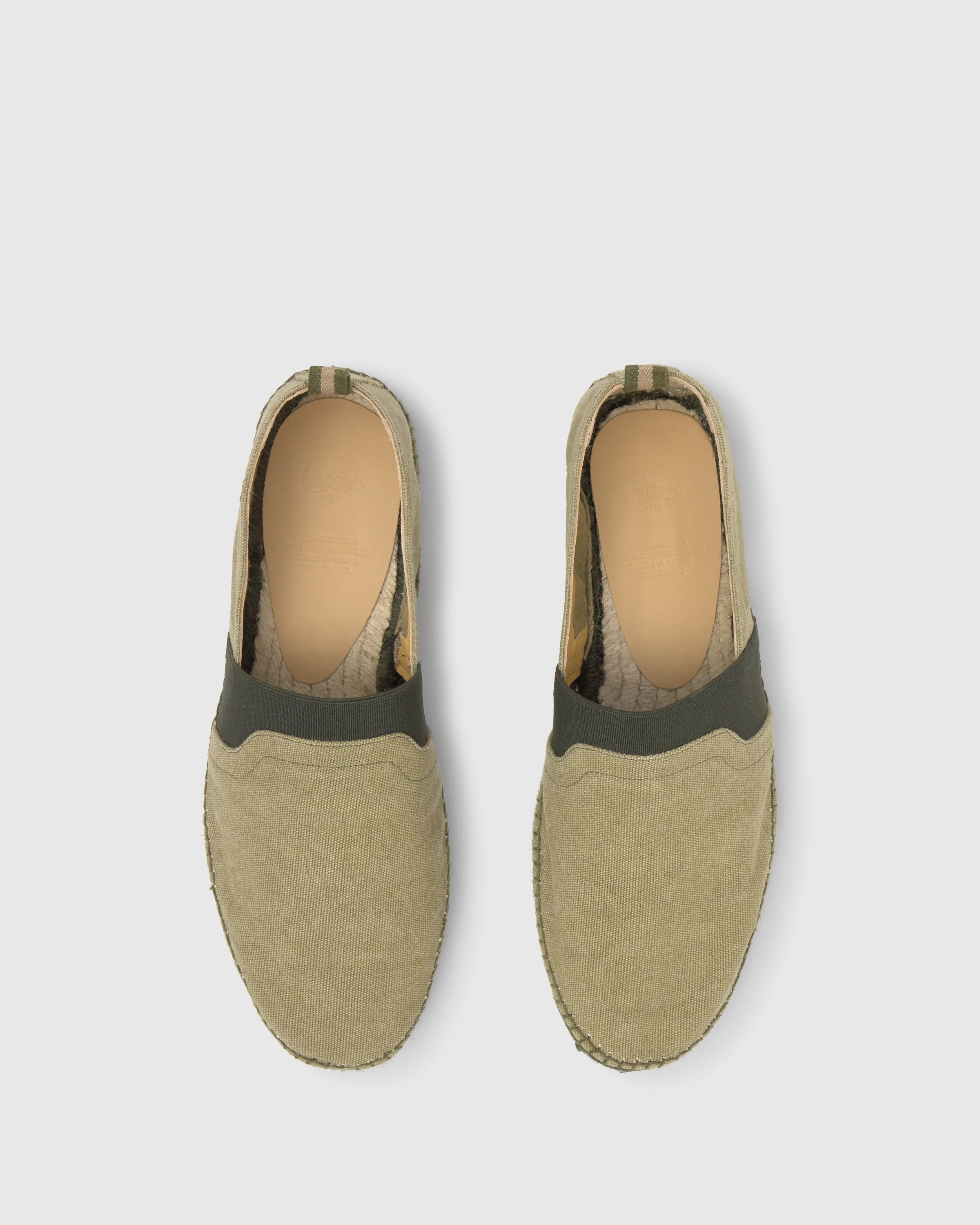 Alpargata Nova tipo camping en algodón orgánico con cierre elástico y suela de yute tintada cosida a mano.