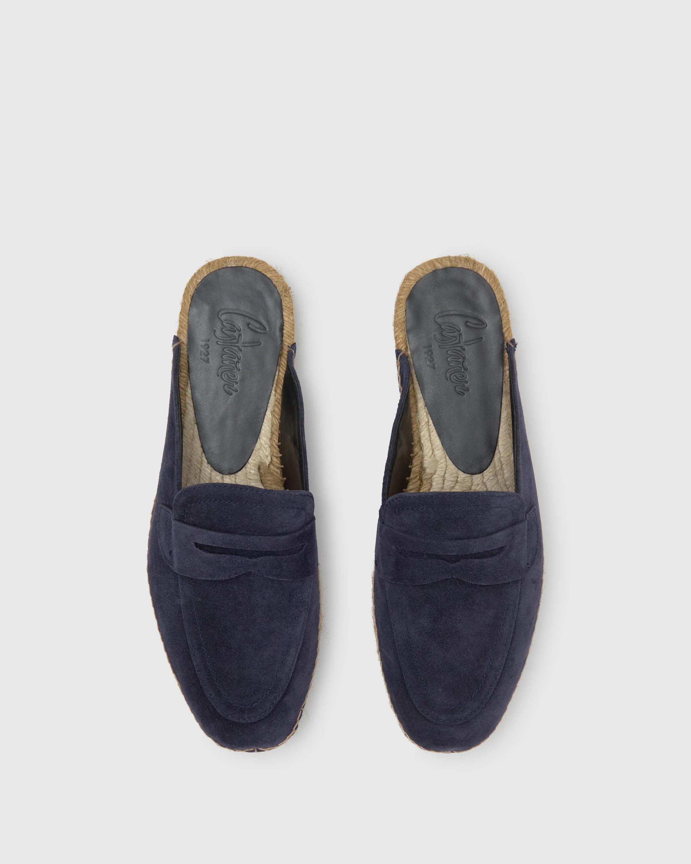 Alpargata destalonada Nando estilo mocasín en serraje y suela de yute taupe.