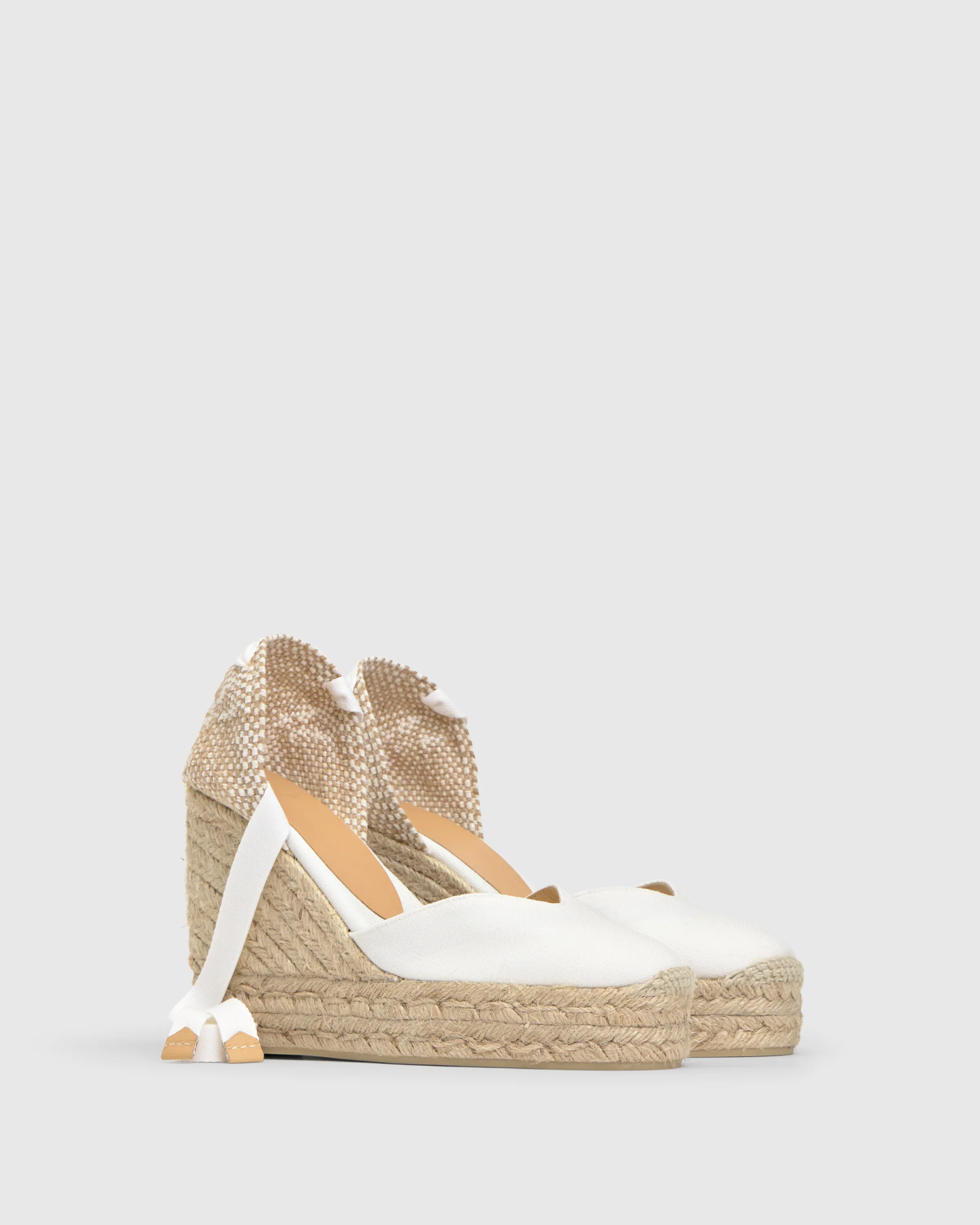 Alpargata Chiara en algodón orgánico con cierre de lazo, plantilla acolchada y escote en V. Cuña de yute de 11cm con doble plataforma.
