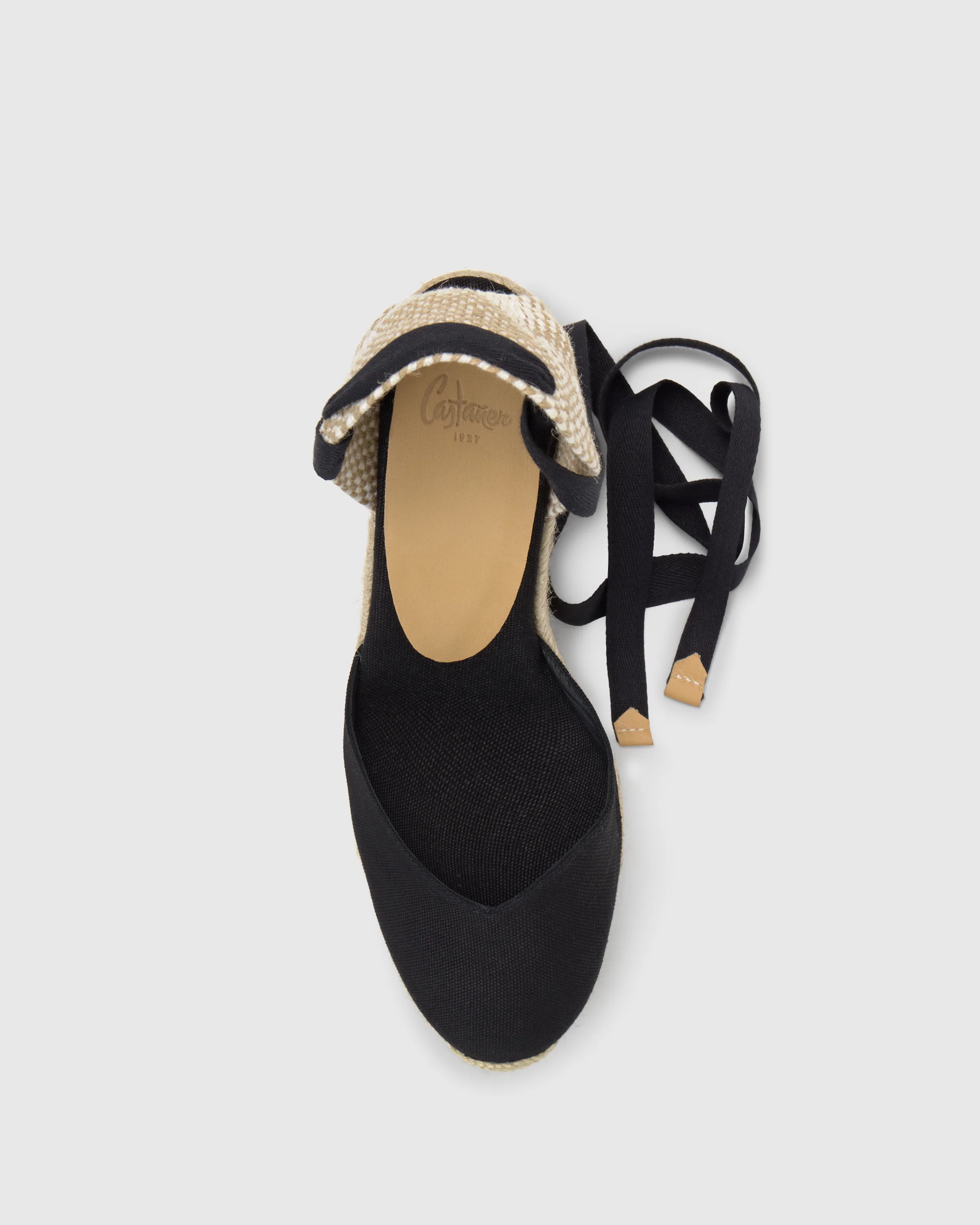 Alpargata Chiara en algodón orgánico con cierre de lazo, plantilla acolchada y escote en V. Cuña de yute de 11cm con doble plataforma.