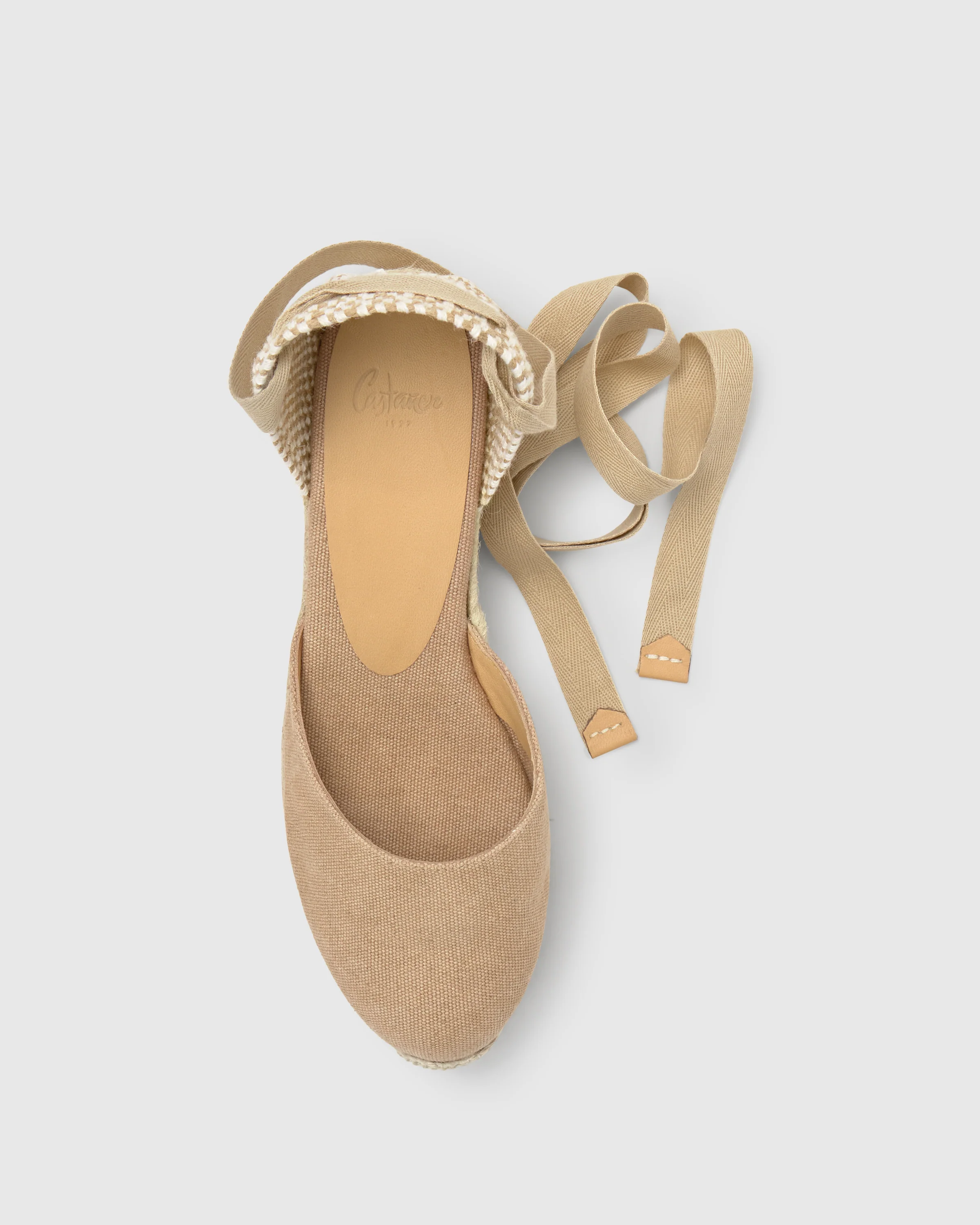 Alpargata Carina en algodón orgánico lavado con cierre de lazada, plantilla acolchada y cuña de yute de 5 cm.